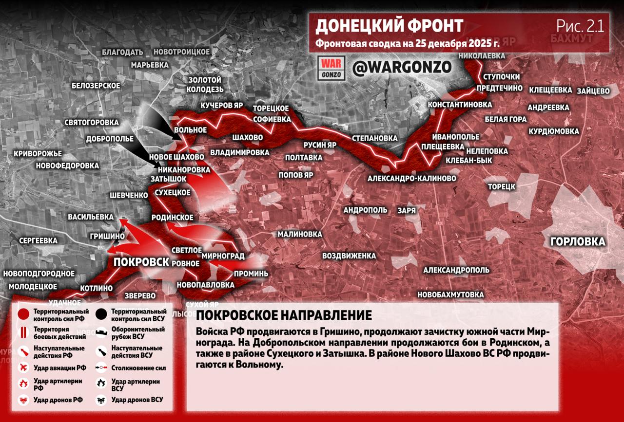 Фронтовая сводка на утро 25.12.25