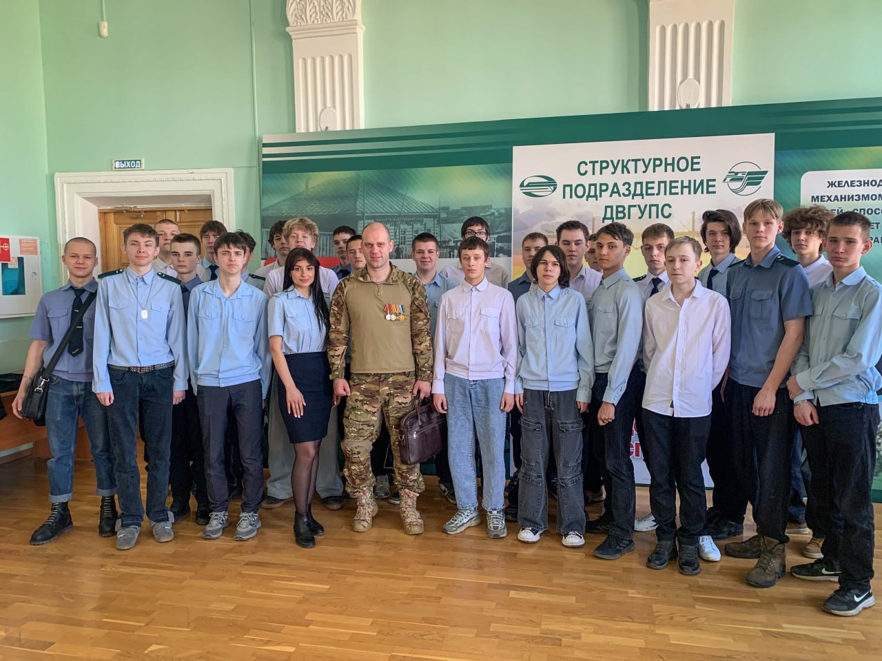 В Хабаровске сотрудники транспортной полиции и ветеран СВО организовали профилактическую лекцию для студентов в рамках Всероссийской акции «Защитники Отечества»