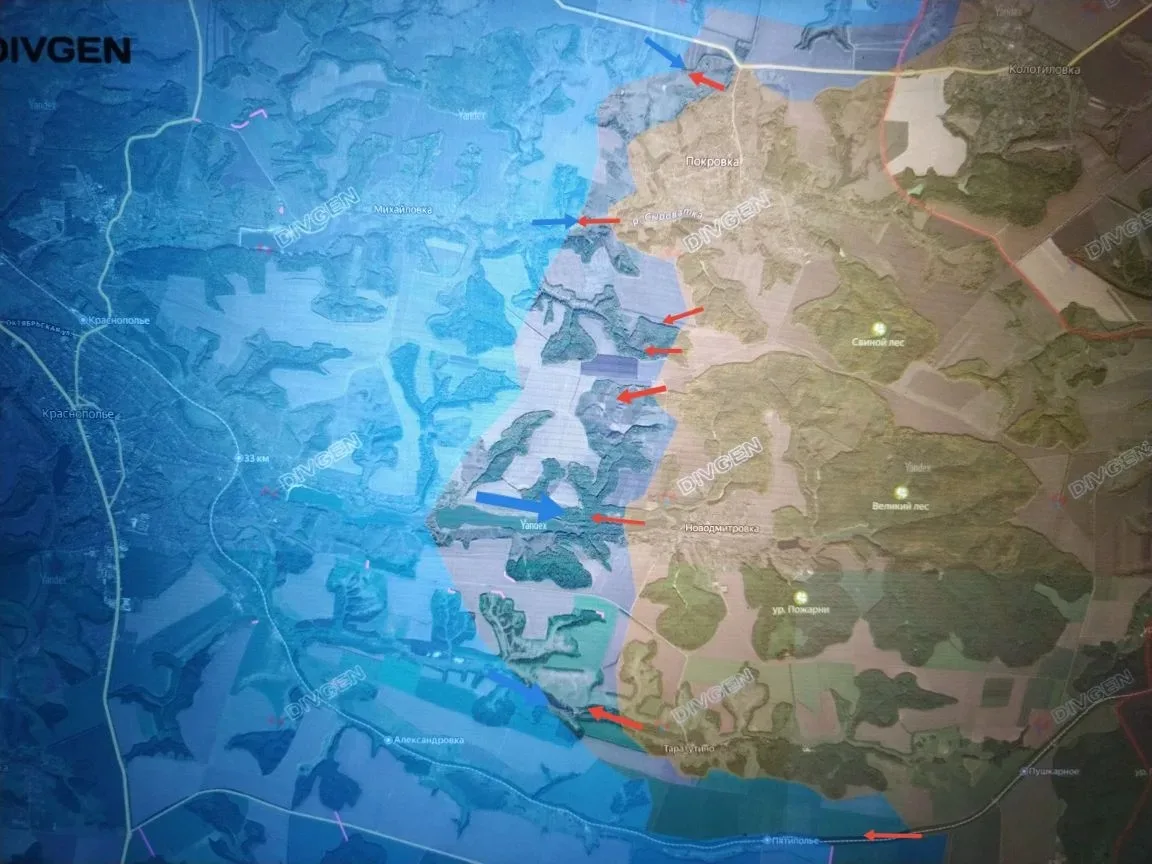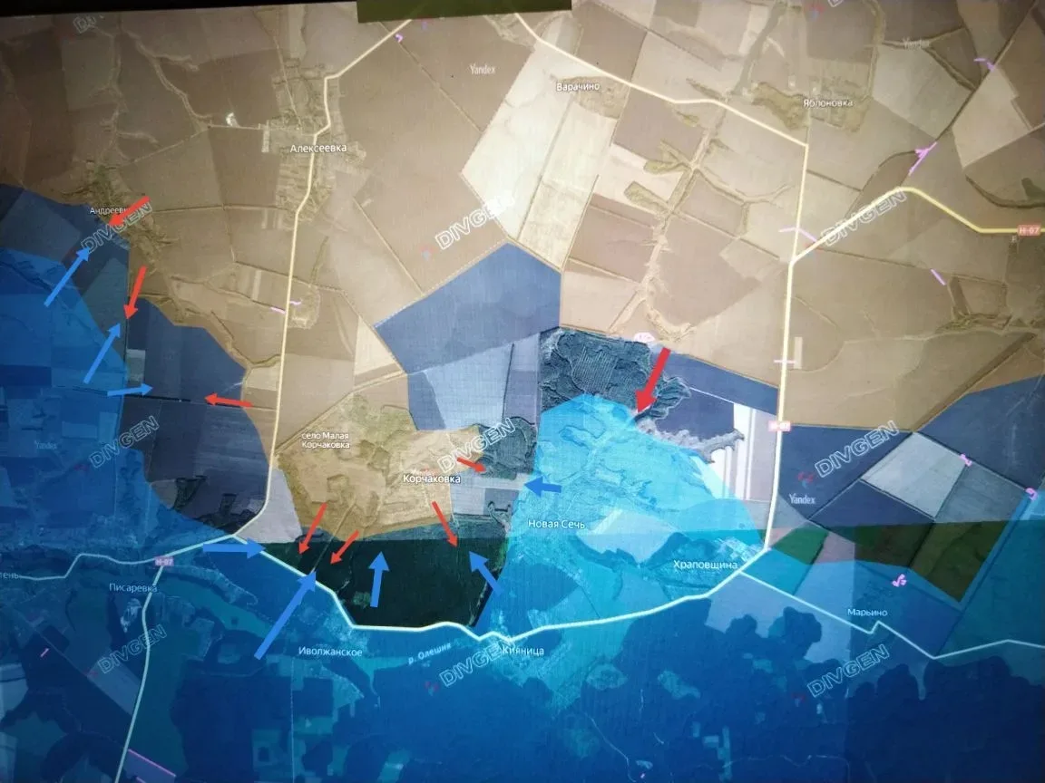 Наши передовые группы начали бои за лесную зону на высотах южнее и юго-восточнее, контроль над которой обеспечит физический контроль над участком трассы Суджа – Сумы выход наших войск к Новой Сечи, Киянице и Иволжанскому, расположенным на берегах р. Олешня.