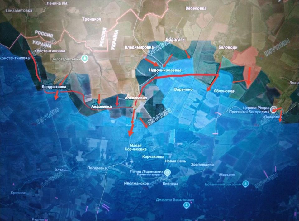 Фронтовая сводка на утро 24.11.25Запорожский фронтВС РФ продолжают оказывать давление на противника в районе Приморского и Степногорска. (Рис. 1.1) На Ореховском направлении войска РФ ведут бои в районе Новоданиловки и южнее Новоандреевки. (Рис....