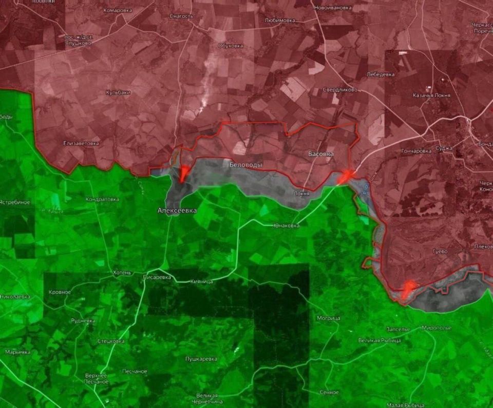 «На Курском направлении ситуация становится всё более критической в Сумском направлении. ВС РФ продолжают наступление, на этот раз с продвижением в районе Алексеевки и Александрии. Прорыв позиций ВСУ в Александрии открыл путь к Мирополью, что создаёт дополнительные угрозы для обороны Сум.