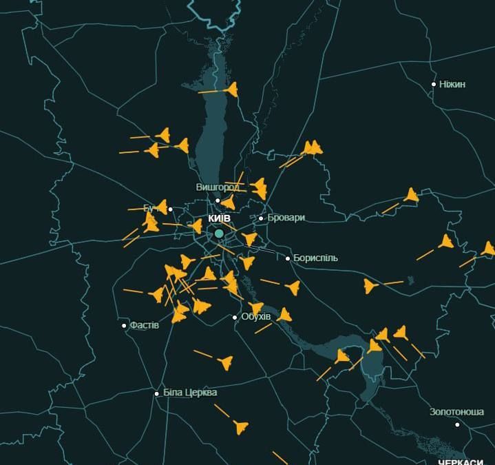 Мощнейшая комбинированная атака продолжается: десятки «Гераней» прямо сейчас фактически окружили Киев