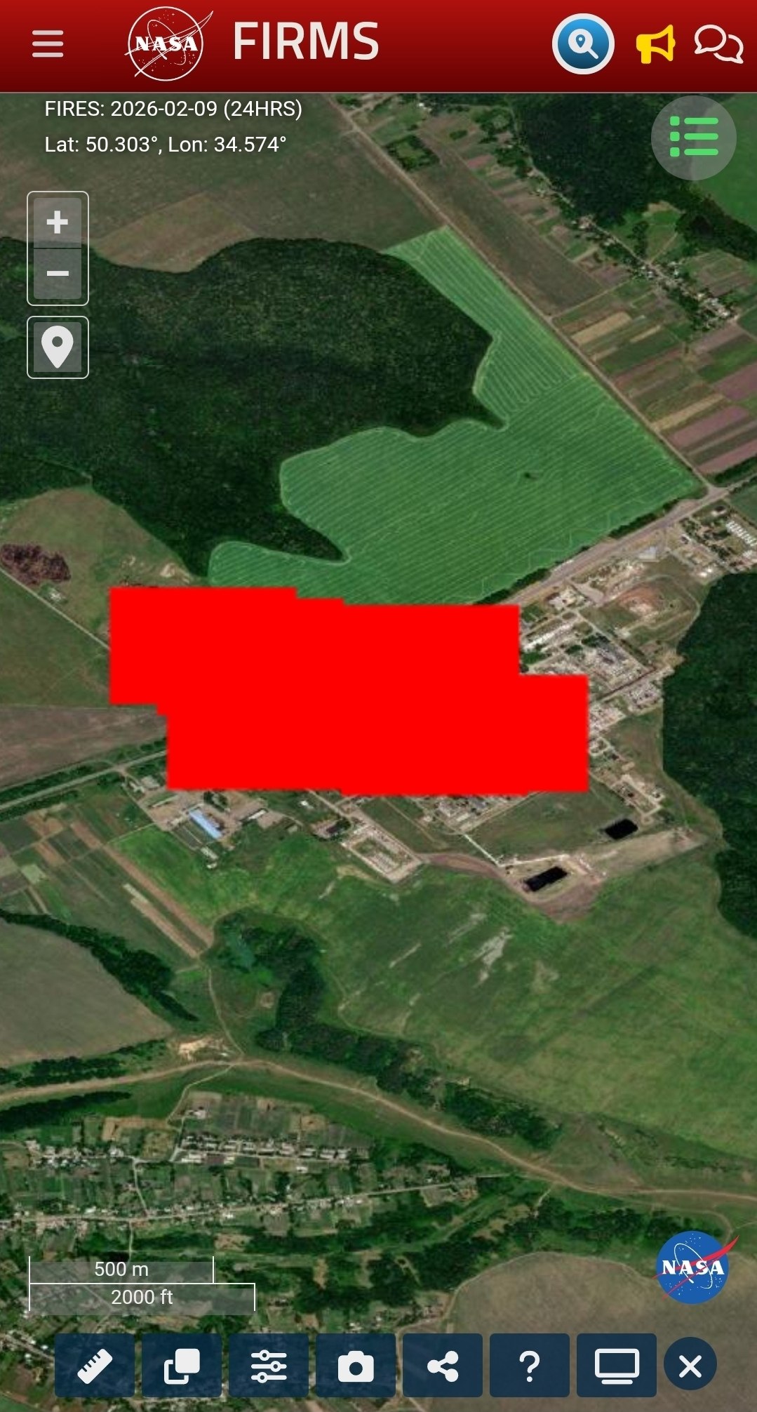 Карта пожаров показывает, что после ночного налёта Гераней на юге Сумской области горит Качановский газоперерабатывающий завод.