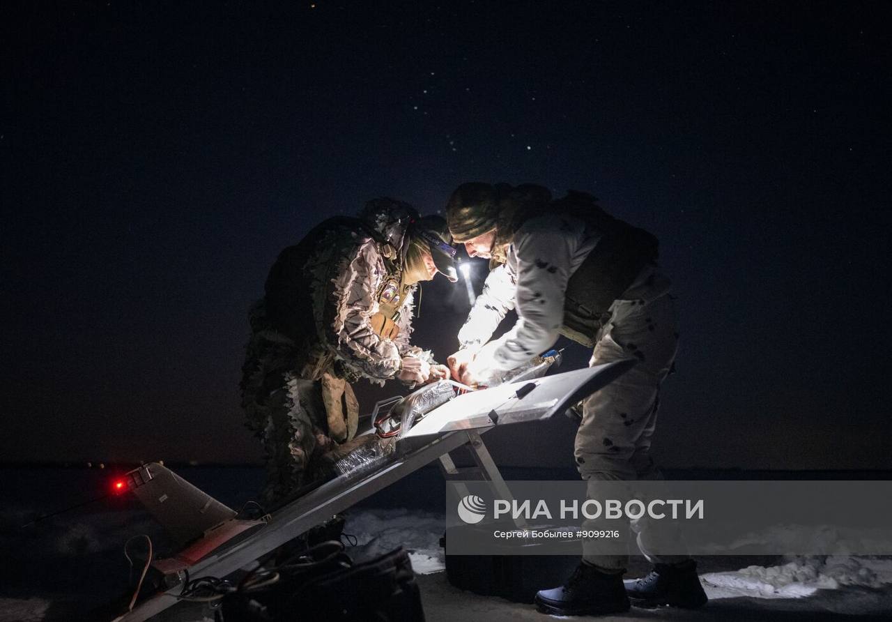 Операторы войск беспилотных систем в составе 30-го мотострелкового полка 44-го армейского корпуса группировки войск «Север» с использованием современных отечественных FPV-дронов, в том числе комплекса «Князь Вандал Новгородский», оснащённого...