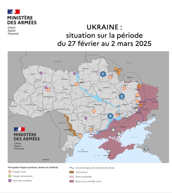 Оперативная обстановка к 3 марта по версии министерства обороны Франции. Общая ситуация: