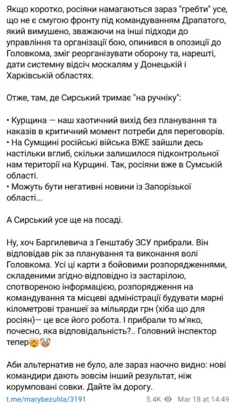 По её словам Русская армия активно наступает в Сумской области, а ВСУки бегут из Курской области "хаотично, без планирования и приказов":