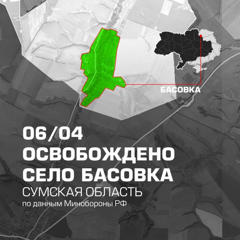 Вооруженные силы России освободили Басовку в Сумской области, сообщает Минобороны.