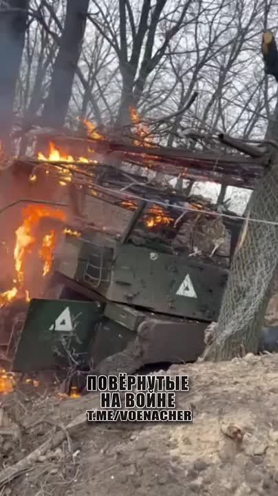 Горящая гаубица западного производства М109 с мангалом в результате удара FPV-дроном на Сумском направлении.