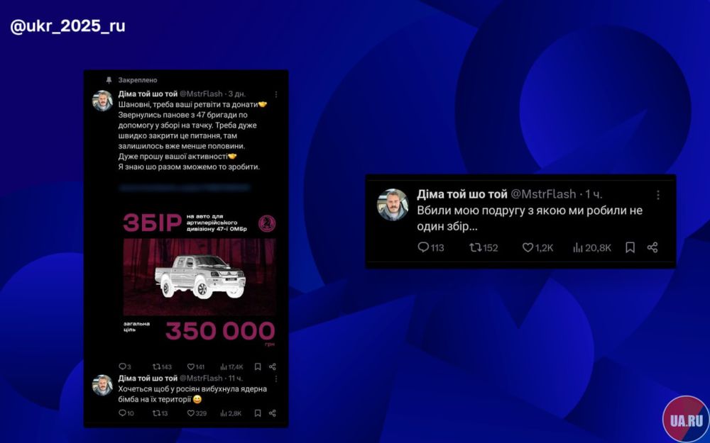 Также чудным образом на месте прилёта оказались украинские "гуманитарщики", которые собирают деньги для ВСУ. Один из таких рассказал, что в следствии удара погибла его подруга с которой они и устраивали сборы.
