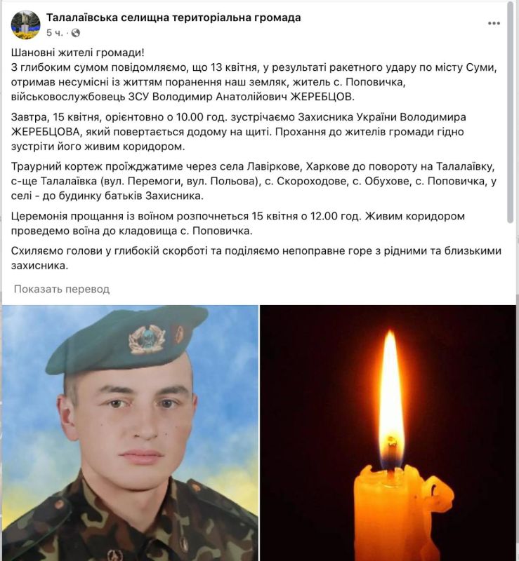 Некролог еще одного погибшего вчера в Сумах «мирного»