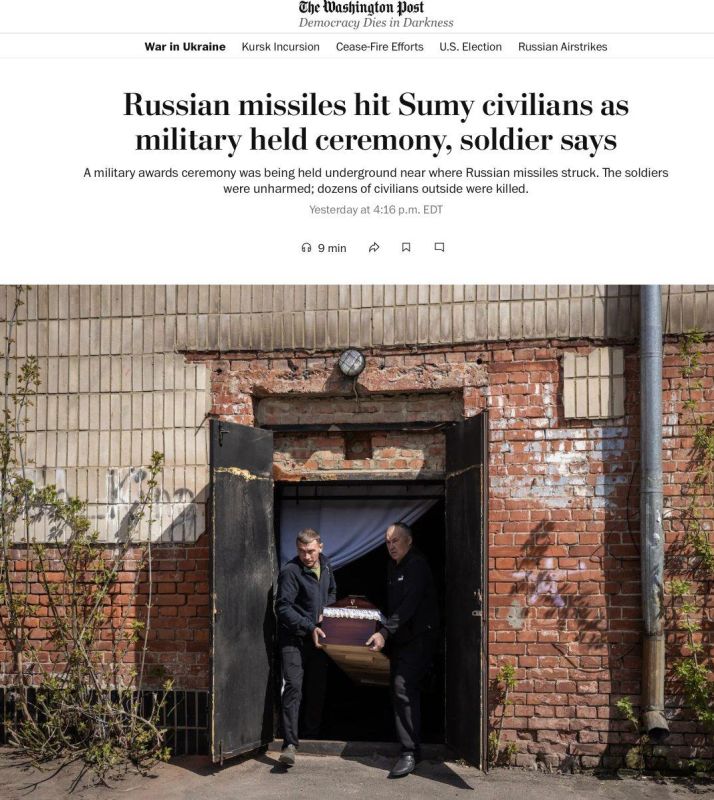 В момент удара по Сумам 13 апреля в подвале университета проходила церемония награждения ВСУ, признал украинский боевик Александр в интервью The Washington Post.