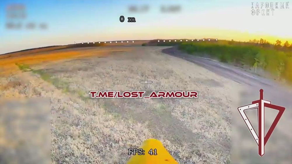 На видео пролет оптоволоконного FPV-дрона "КВН" в направлении н.п. Угроеды, Сумской области с объективным контролем потерь бронетехники противника.