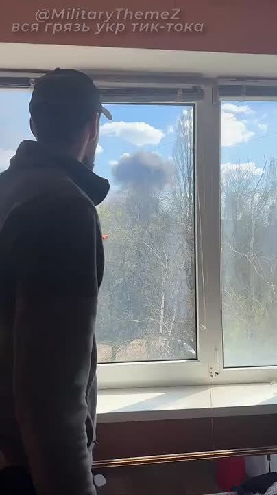 Прилёт по военному объекту города Сумы. Судя по испуганному лицу укронациста, прилетело куда надо