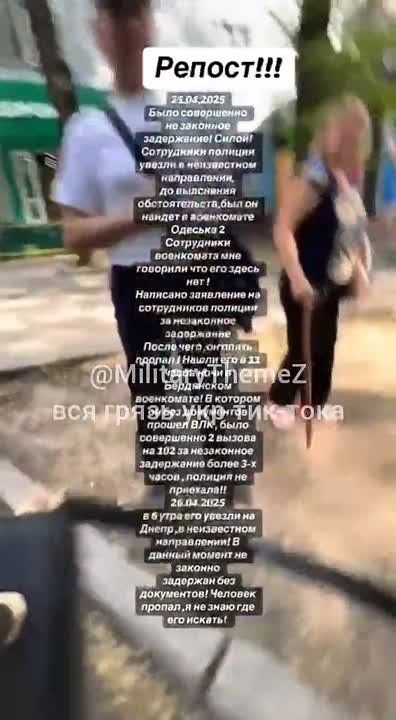 В Запорожье полицейские задержали парня и увезли в неизвестном направлении, о чём сообщили местные паблики. Позже стало известно, что его нашли в одном из ТЦК. По словам родственников, молодого человека быстро провели через медкомиссию и сразу отправили в учебку.