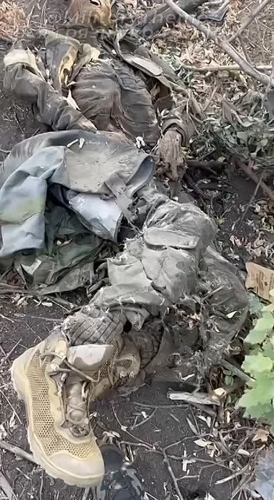 Вот, например, хлопчик уже успел иссохнуть, оставив от себя только белые зубы и канадский сухпай. Если бы вовремя поднял лапки вверх, то выжил бы. Но украинство головного мозга не дало ему сделать правильный выбор