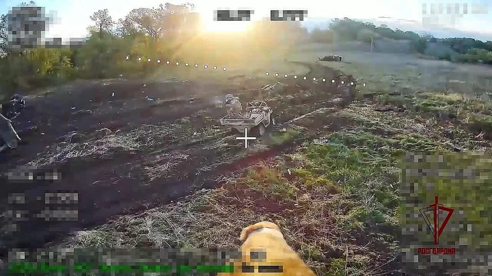 Точно в цель: дрон Росгвардии нанес удар по украинскому боевику на квадроцикле в Сумской области.