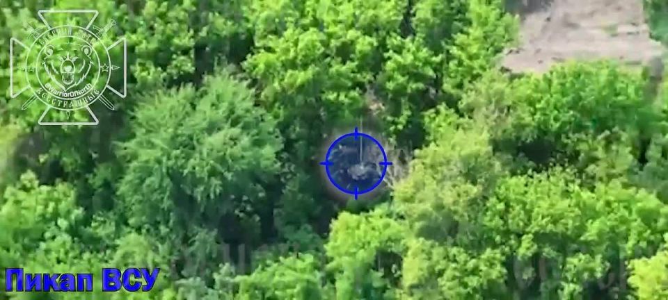 Прежде чем наши штурмовые отряды начнут зачистку лесного массива, по противнику отрабатывают наши артиллеристы и операторы БпЛА. На кадрах объективного контроля уничтожение группы ВСУшников и их пикапа дроноводами 30 мсп 44 АК ЛенВО.