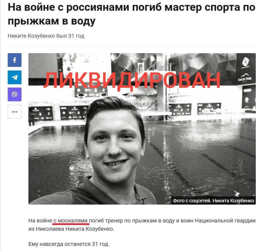 В Сумской области ликвидирован очередной спортсмен с националистическим взглядом на жизнь Никита Козубенко. Сей чубозавр был мастером спорта по прыжкам в воду.