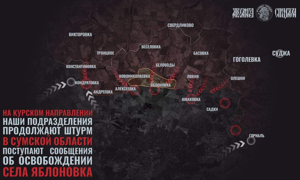 В Сумской области наши подразделения продолжают наступать. Основные усилия наших войск на данный момент сосредоточены на Юнаковке – ключевом опорном пункте на данном рубеже, от которого зависит оборона противника.