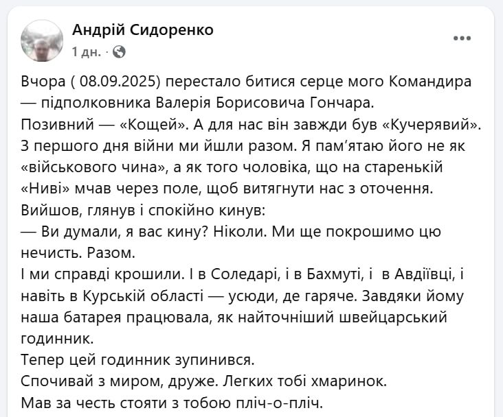 На Сумском направлении ликвидирован подполковник Валерий Гончар.