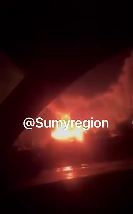 Кадры пожара после удара по газоперерабатывающему заводу в Сумской области.