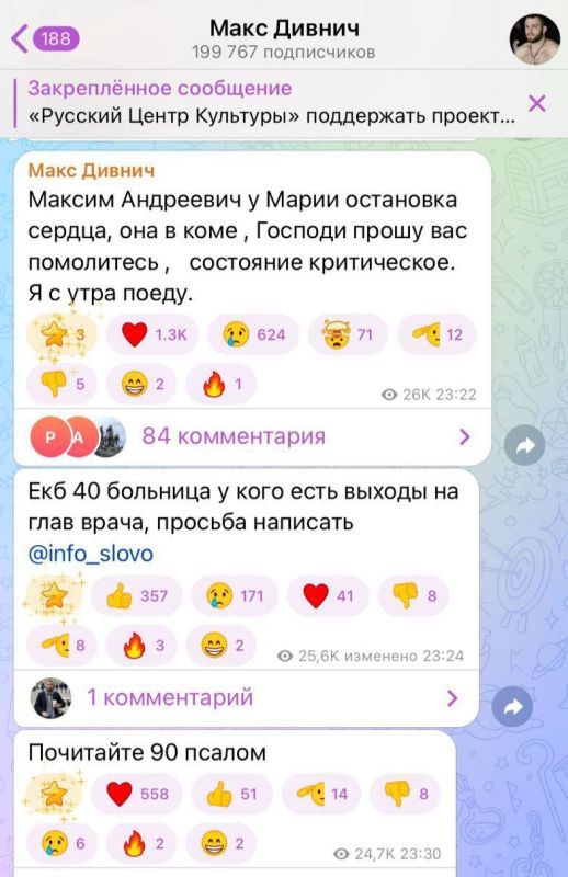 Последние несколько месяцев боец ММА занимался сборами средств с аудитории для некой 18-летней сироты Марии, которую злые врачи якобы заставляли сделать аборт. На его канале была целая череда публикаций про тяжёлое состояние девушки и её новорожденного ребёнка. Скрины взяты отсюда, так как Макс Дивнич почему-то сделал свой канал приватным.