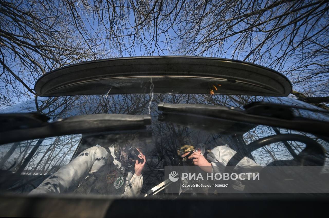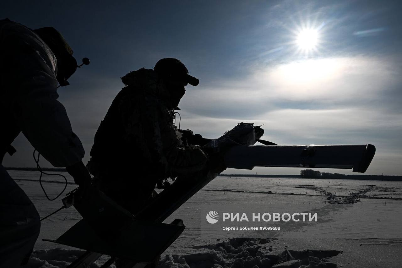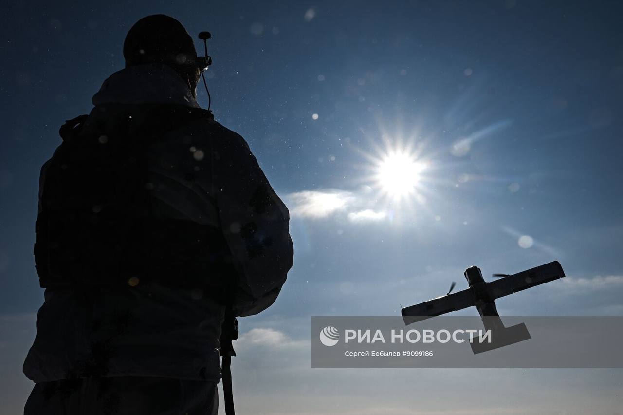 Кадры боевой работы расчёта FPV-дронов самолётного типа «Молния-2» батальонной тактической группы «Каштана» спецназа «АХМАТ» МО РФ на Сумском направлении