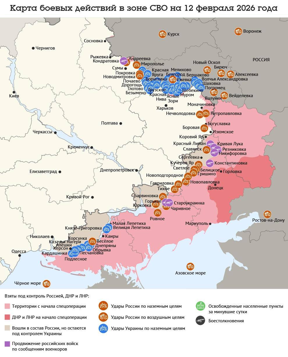 Карта боевых действий в зоне СВО на 12 февраля 2026 года