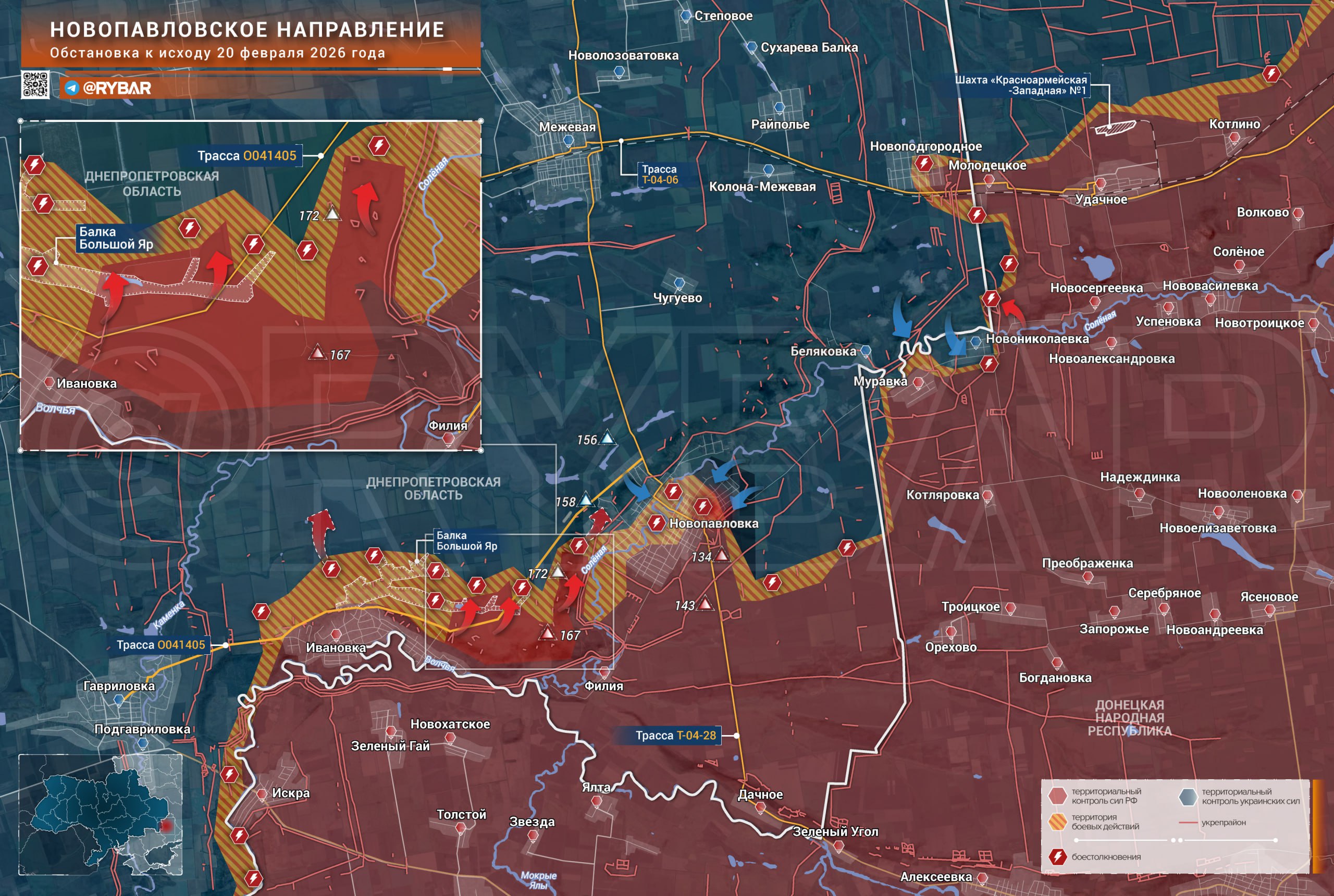На Новопавловском направлении украинские формирования смогли отбить часть позиций на севере Новопавловки, а ВС РФ восстановили контроль над высотами у Ивановки.