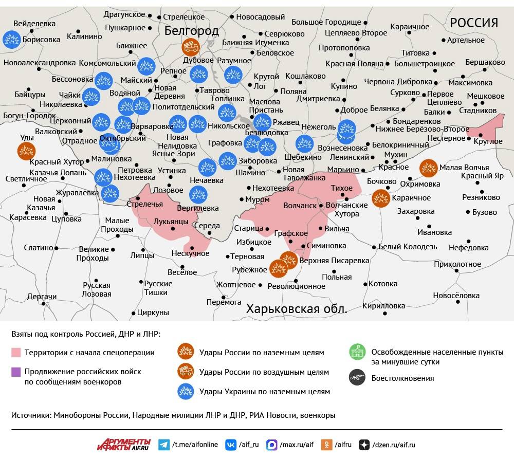 По данным Минобороны РФ, наши войска освободили село Червоная Заря в Сумской области, расширяя буферную зону в курском приграничье. Кроме того, военкоры сообщают об освобождении Ильиновки на константиновском направлении, но официально этот успех пока не подтвержден.