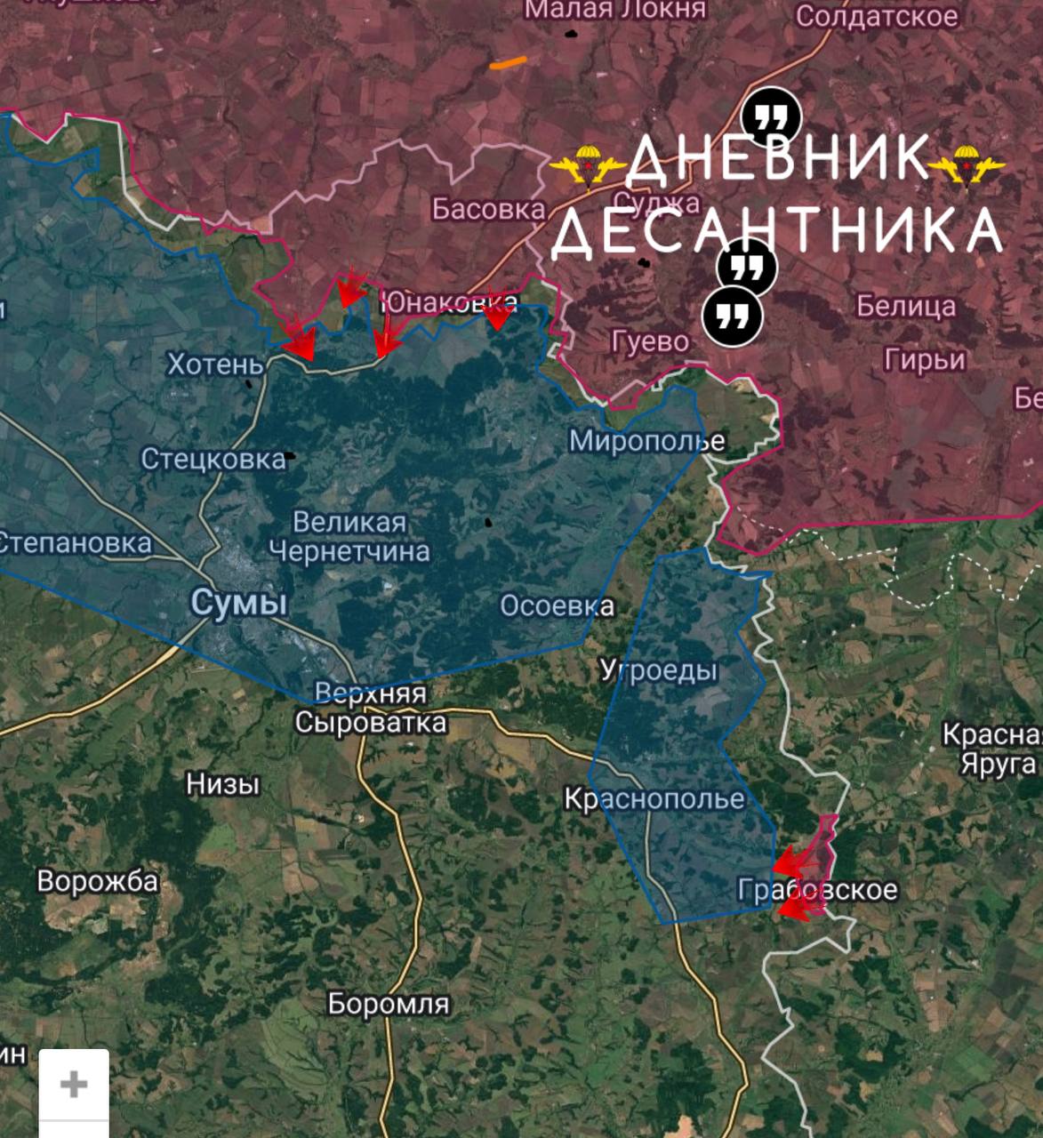 Штурмовые группы ВС РФ в ходе упорных боев продвинулись в Сумском районе на четырнадцати участках. За сутки продвижение составило до 200 м.;
