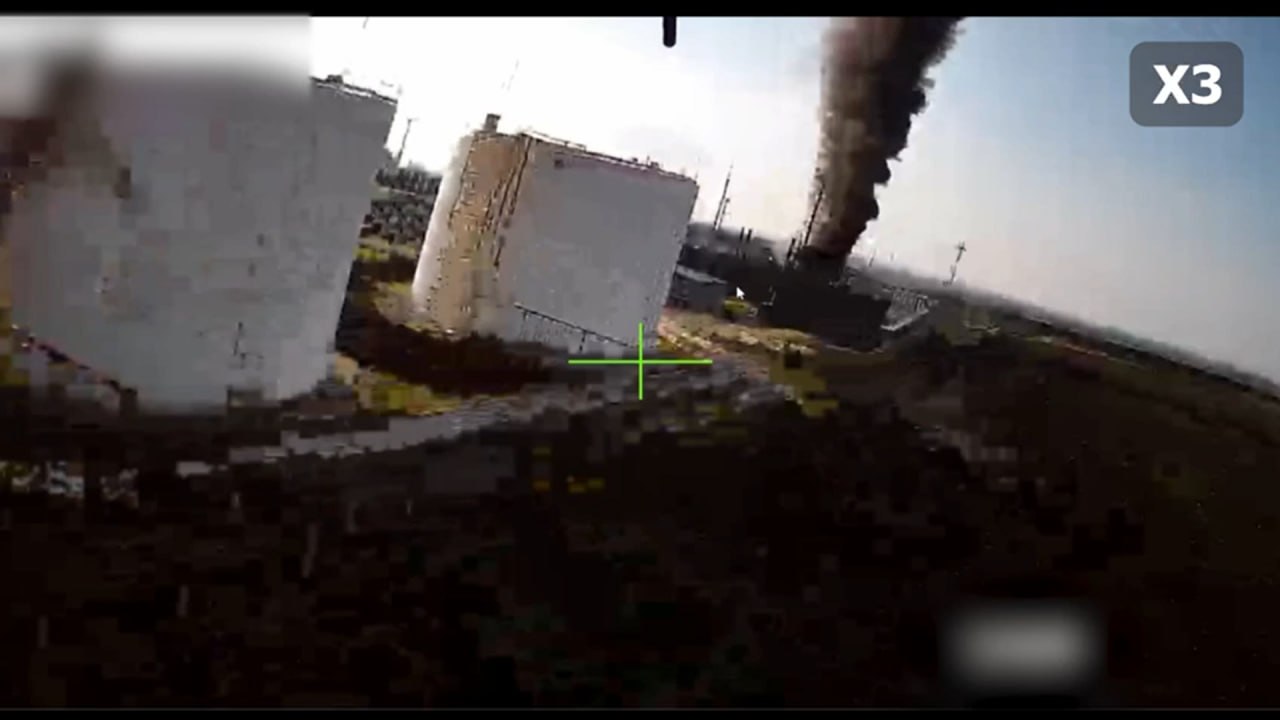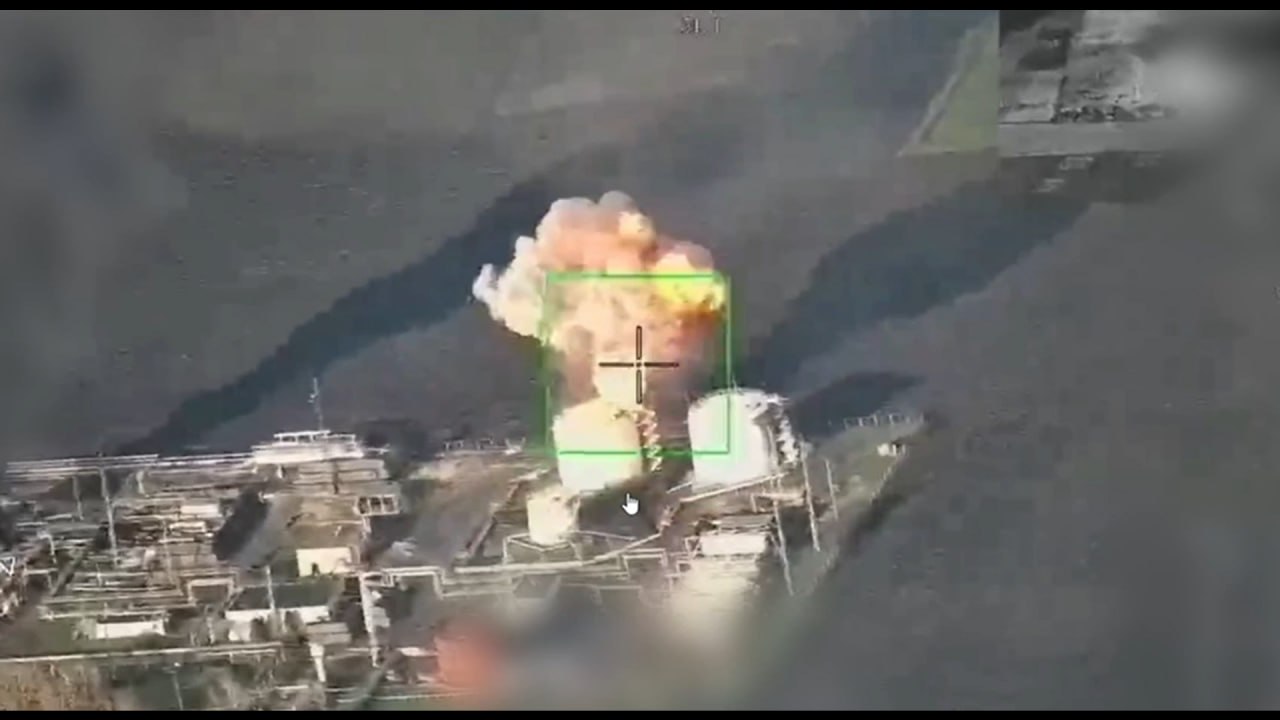Кадры боевого применения новейших реактивных БПЛА-камикадзе "Герань-5" по объектам нефтегазовой инфраструктуры в Сумской области.#СВО@new_militarycolumnist