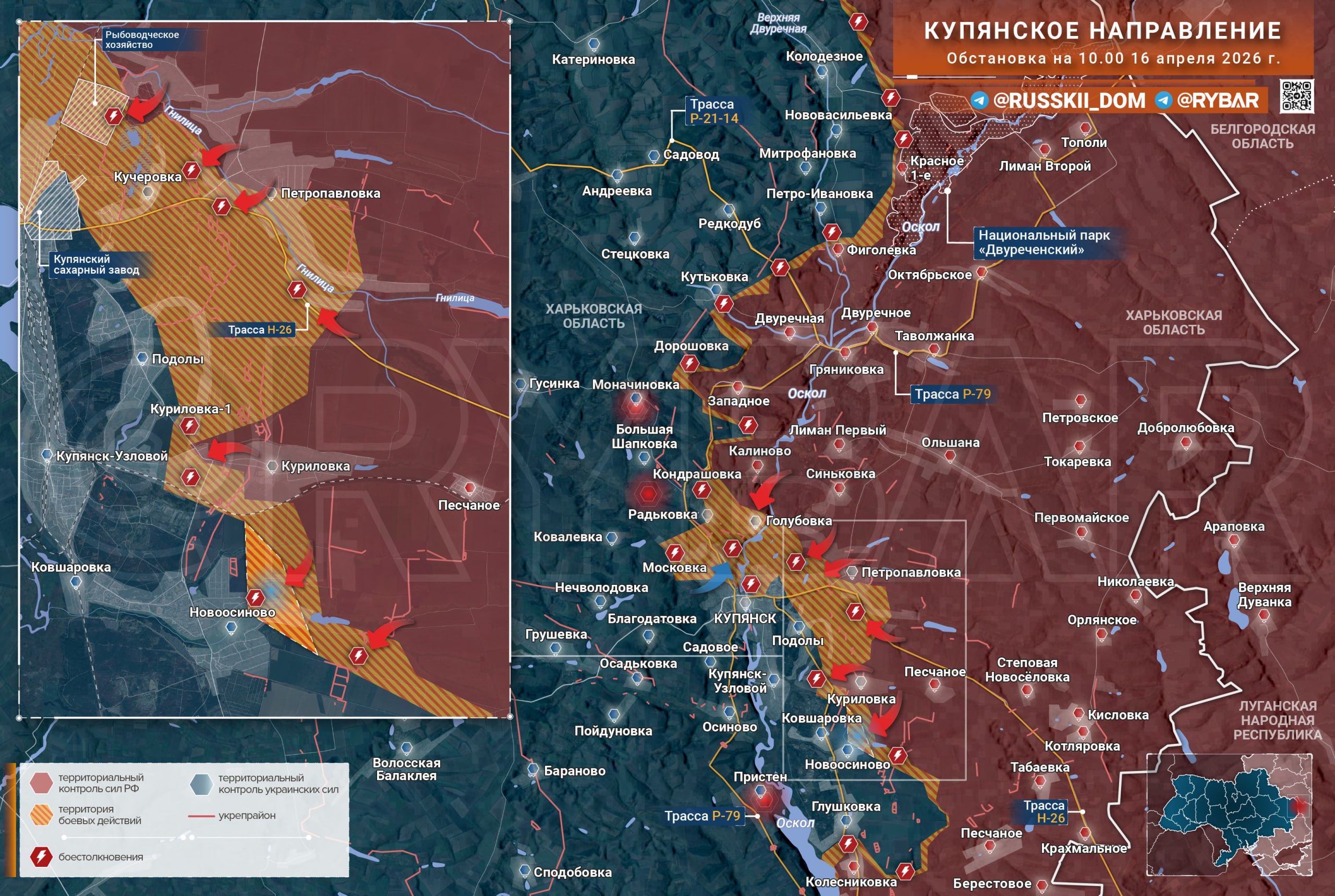 На Купянском направлении российские войска постепенно расширяют зону контроля на левом берегу Оскола, стремясь окончательно оттеснить противника из Петропавловки. В самом Купянске пока продолжаются тяжелые бои, большая часть города остаётся в «серой зоне».