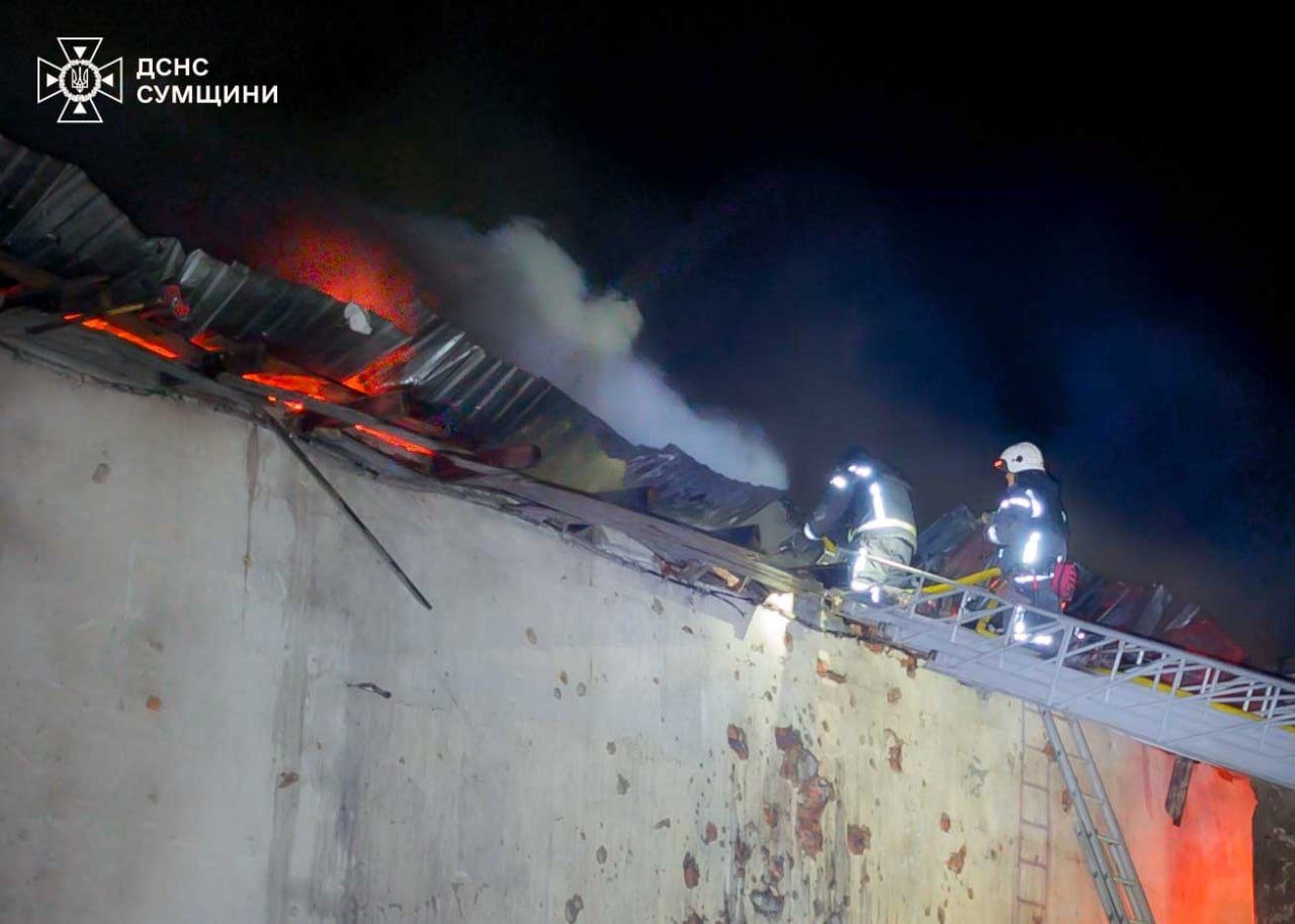 Последствия ударов БПЛА по складским помещениям в районе Шостки Сумской области