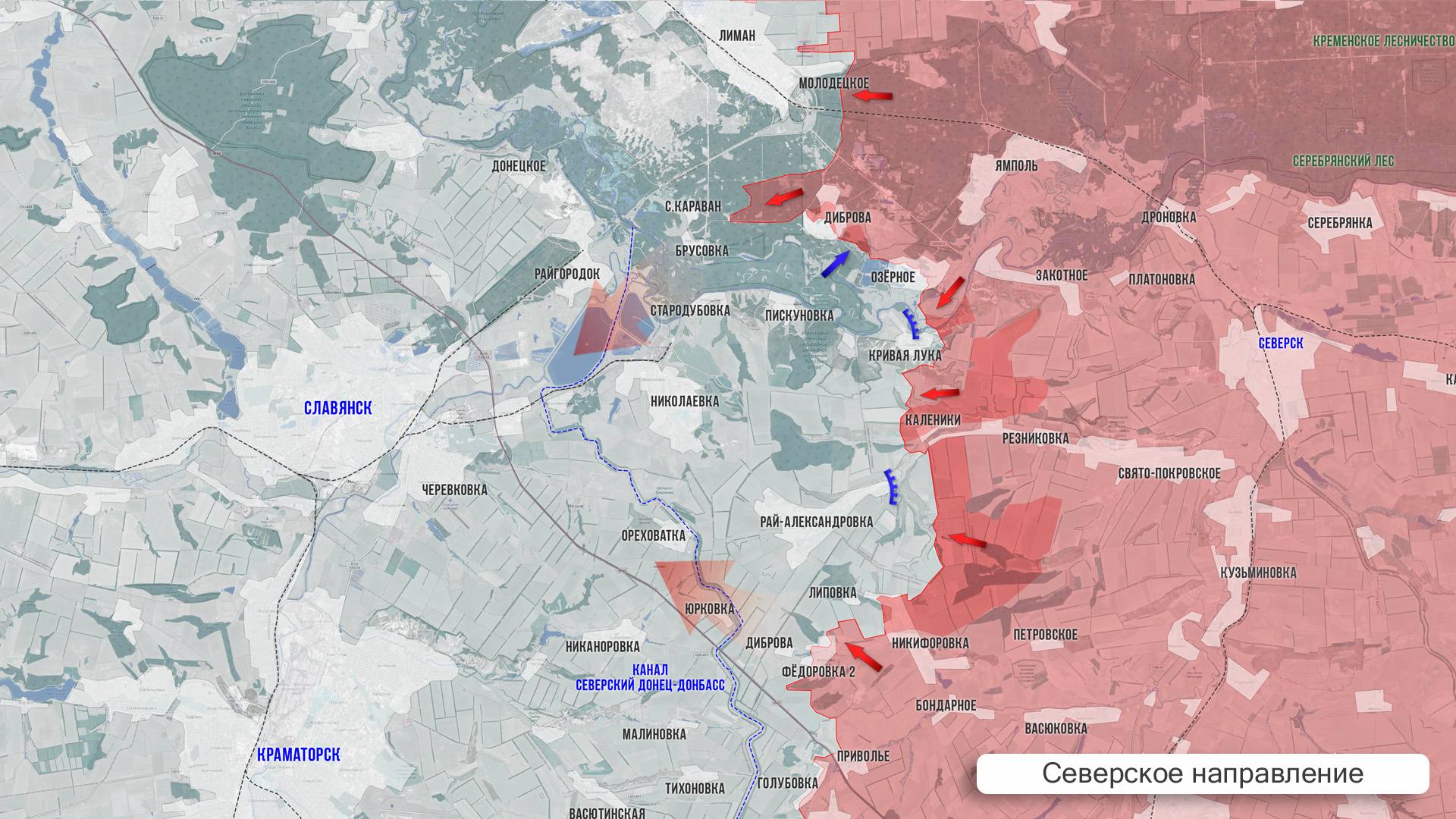 На Краснолиманском фронте продолжаются тяжёлые бои в восточной и юго-восточной частях города. Противник бросает в бой на этом участке иностранных наёмников и забрасывает дополнительные подразделения БПЛА, чтобы остановить продвижение наших войск. На участке Дробышево-Яровая без изменений.