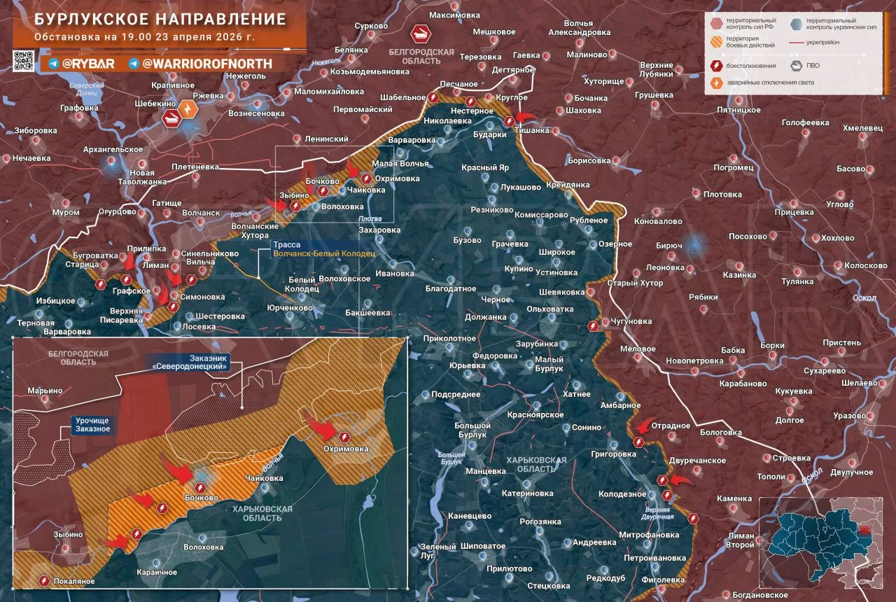 На протяжении последних двух недель активность российских войск на обеих берегах Волчьей значительно увеличилась. Освобождено Зыбино и Волчанские Хутора, начаты бои за Покаляное и Бочково. Если раньше ГВ «Север» наступали на сравнительно узком участке фронта в Харьковской области, что позволяло противнику держать оборону небольшими силами, то сегодня наши войска продвигаются фактически по всей линии соприкосновения.