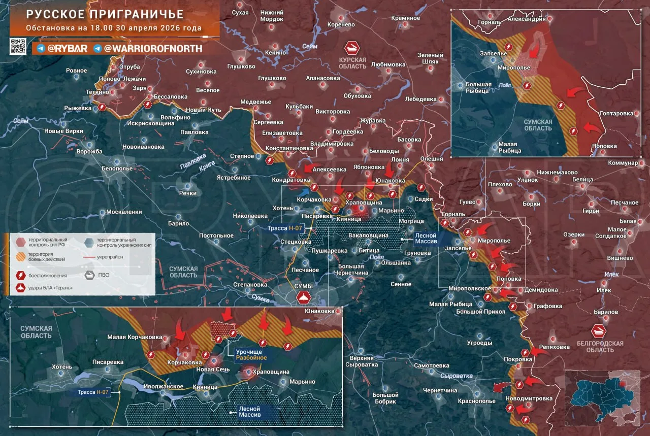 Противник не оставляет попыток контратаковать как на недавно утраченных территориях, так и на более спокойных к текущему моменту участках приграничной территории. А потому с учетом динамики развития событий ожесточения боев на Сумском направлении будет только расти, особенно с учетом появления листвы.